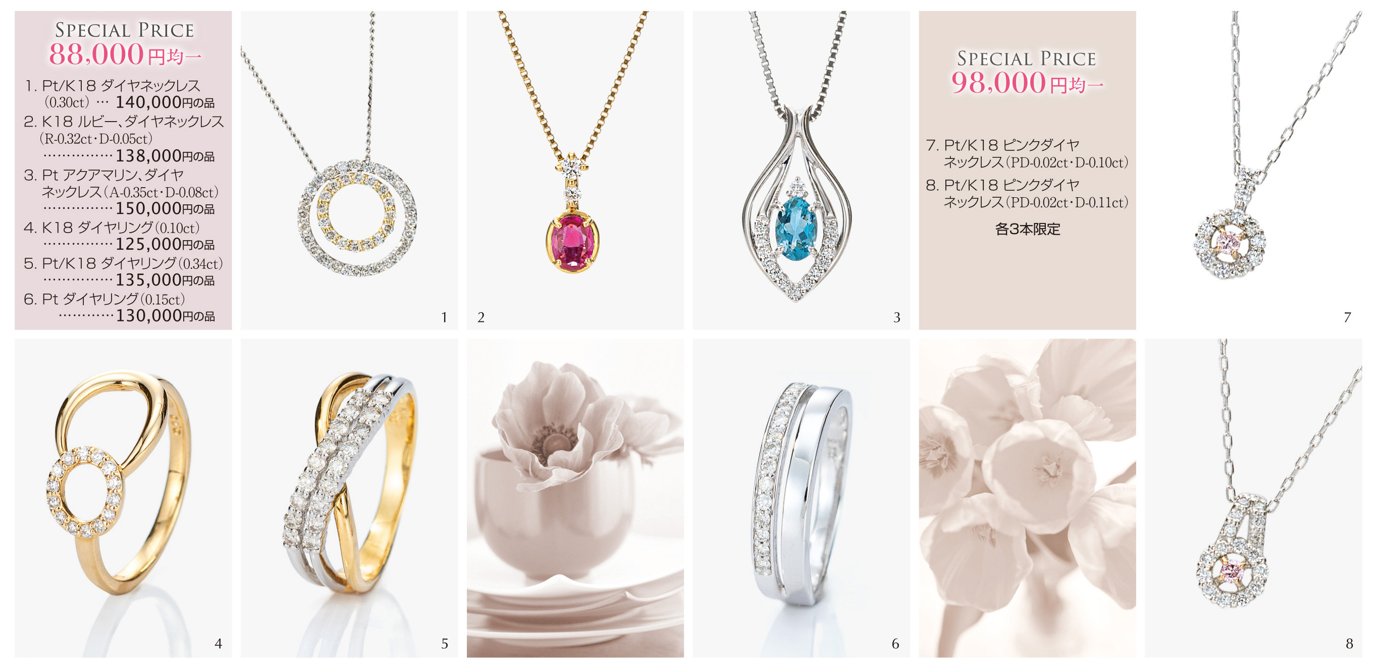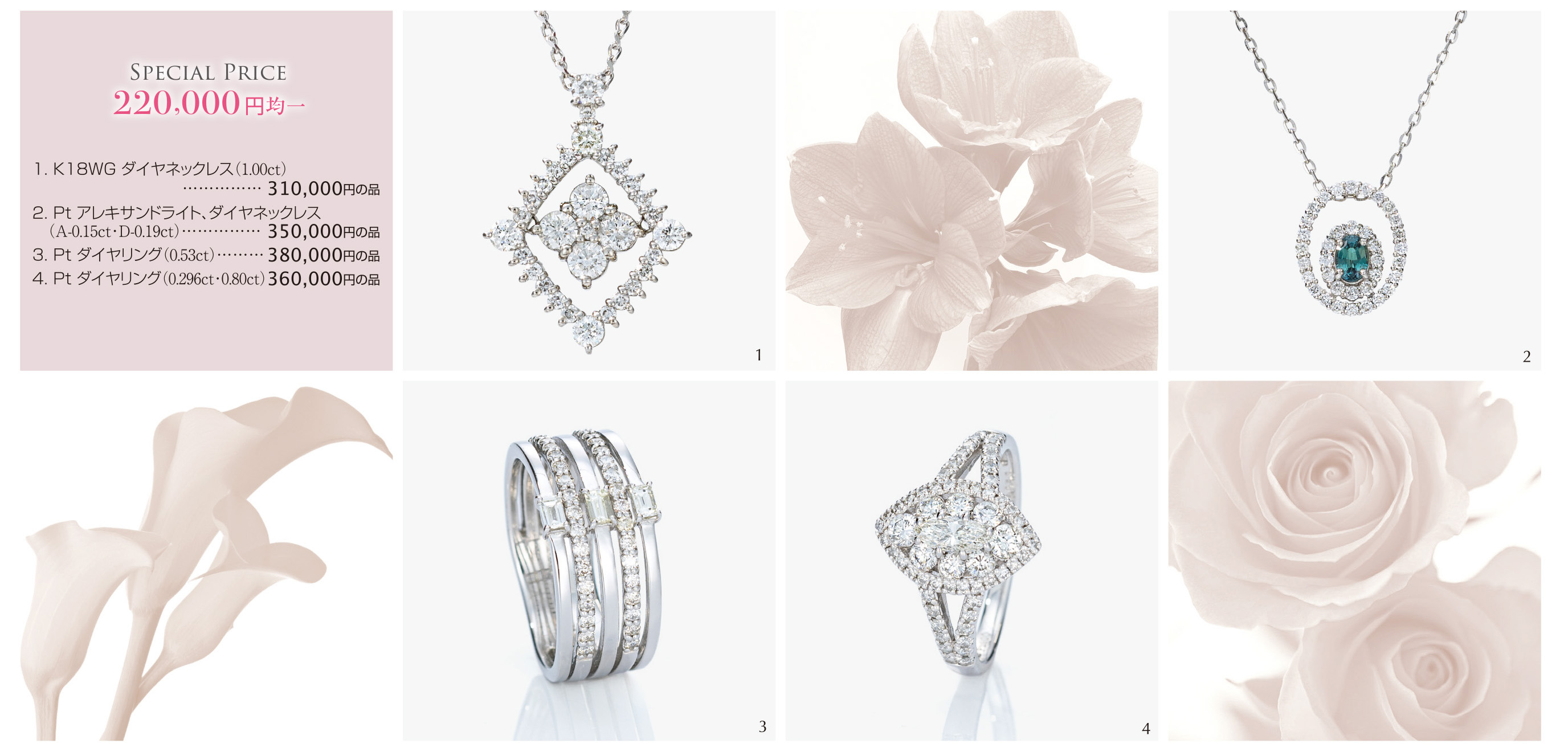 日頃のご愛顧に感謝の気持ちを込め、お値打ちなジュエリーや厳選されたウォッチなど数多くの商品をご用意させて頂きました。