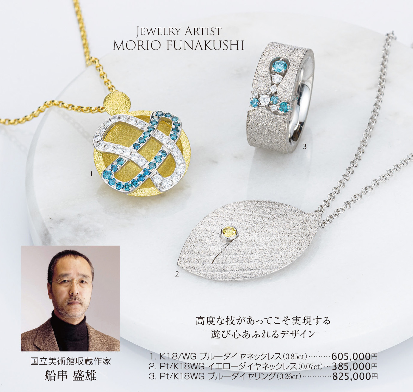 国立美術館収蔵作家 舟串盛雄の一際目を引くジュエリーコレクションです。