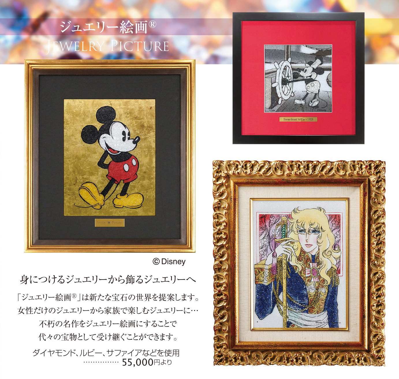 キャラクターや世界的有名な絵画・浮世絵など飾るジュエリーはご家族皆様でお楽しみいただけます。